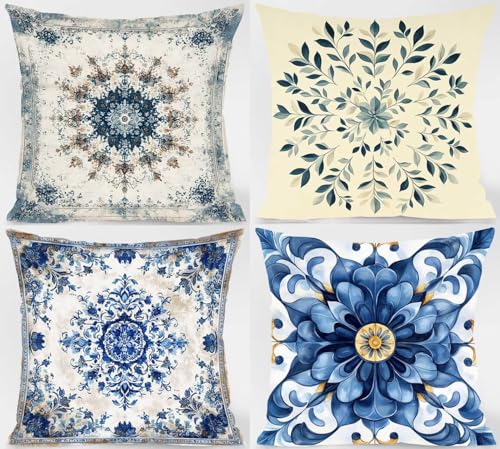 【DOPPELSEITIGES MUSTER】: 4 quadratische Kissenbezüge. Bitte ästimieren Sie, dass aber ein Kissenbezug, keine Füllung oder Einlage enthalten ist. Das beidseitig bedruckte Muster ermöglicht es Ihnen, den Raum nach Belieben zu dekorieren und die gemusterte Seite nicht zu weiden. Das ist praktischer