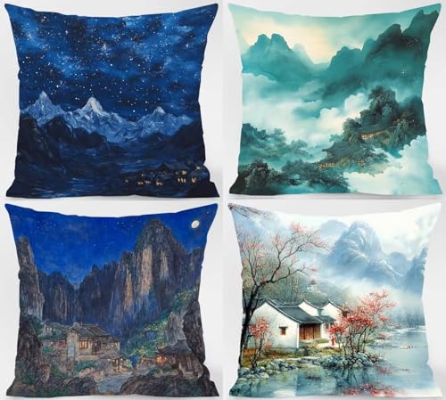 【DOPPELSEITIGES MUSTER】: 4 quadratische Kissenbezüge. Bitte wertschätzen Sie, dass freilich ein Kissenbezug, keine Füllung oder Einlage enthalten ist. Das beidseitig bedruckte Muster ermöglicht es Ihnen, den Raum nach Belieben zu dekorieren und die gemusterte Seite nicht zu abweiden. Das ist praktischer