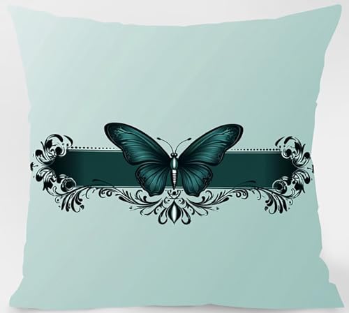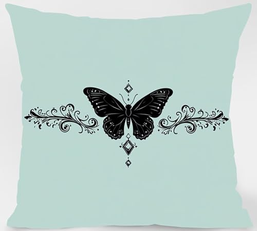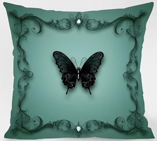 Kissenbezug 80 x 80cm 4er Set, Outdoor Kissen Schmetterling Sofakissen Dunkel Dekokissen, Doppelseitiger Druck Wasserdichtes Leinen KissenbezüGe, KissenhüLlen für Garten Deko Wohnzimmer Model-09036