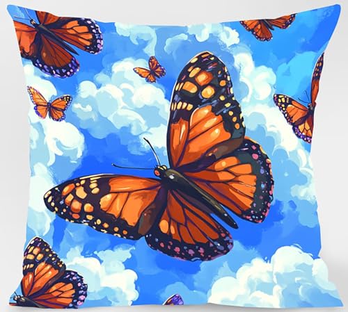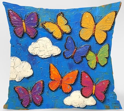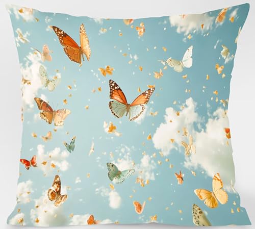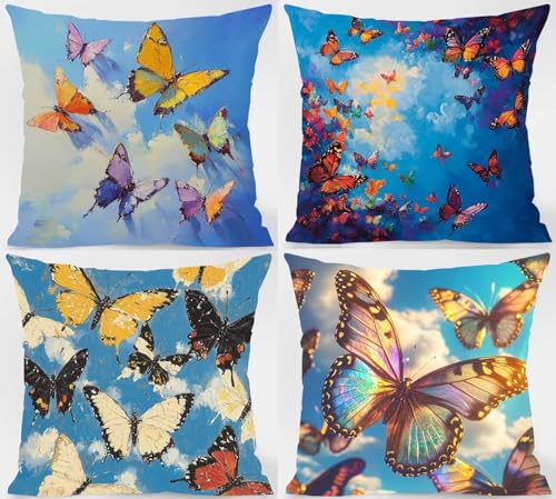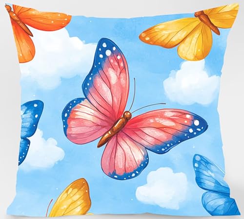 Kissenbezug 80 x 80cm 4er Set, Outdoor Kissen Schmetterling Sofakissen Farbe Dekokissen, Doppelseitiger Druck Wasserdichtes SanftKissenbezüGe, KissenhüLlen für Schlafzimmer Deko Wohnzimmer Model-07344