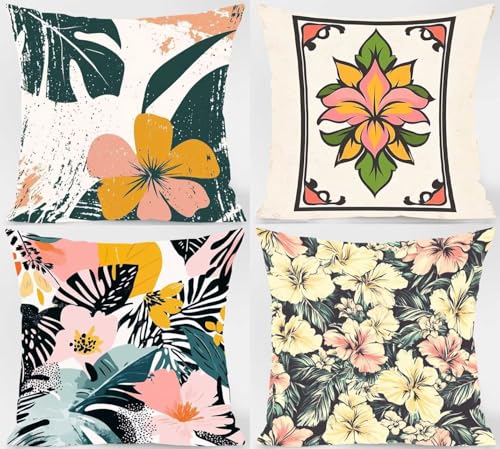 【DOPPELSEITIGES MUSTER】: 4 quadratische Kissenbezüge. Bitte wertschätzen Sie, dass freilich ein Kissenbezug, keine Füllung oder Einlage enthalten ist. Das beidseitig bedruckte Muster ermöglicht es Ihnen, den Raum nach Belieben zu dekorieren und die gemusterte Seite nicht zu fahnden. Das ist praktischer