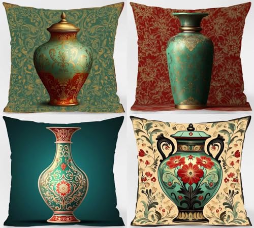 【DOPPELSEITIGES MUSTER】: 4 quadratische Kissenbezüge. Bitte verbannen Sie, dass wohl ein Kissenbezug, keine Füllung oder Einlage enthalten ist. Das beidseitig bedruckte Muster ermöglicht es Ihnen, den Raum nach Belieben zu dekorieren und die gemusterte Seite nicht zu grasen. Das ist praktischer