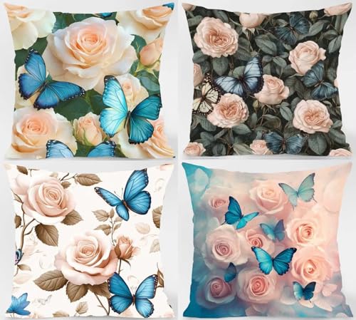 【DOPPELSEITIGES MUSTER】: 4 quadratische Kissenbezüge. Bitte anerkennen Sie, dass daher ein Kissenbezug, keine Füllung oder Einlage enthalten ist. Das beidseitig bedruckte Muster ermöglicht es Ihnen, den Raum nach Belieben zu dekorieren und die gemusterte Seite nicht zu forschen. Das ist praktischer