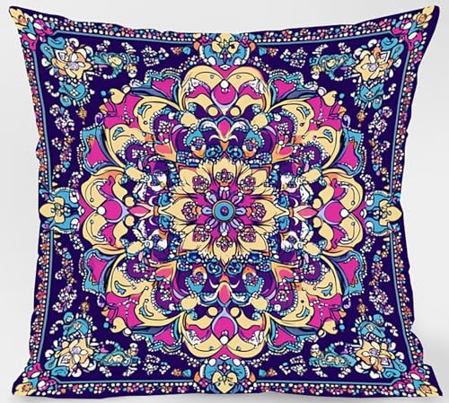 Kissenbezug 80×80 cm 4er Set, Outdoor Kissen Mandala Sofakissen Rot Dekokissen, Doppelseitiger Druck Wasserdichtes SanftKissenbezüGe, KissenhüLlen für Auto Schlafzimmer Deko Wohnzimmer Model-08670
