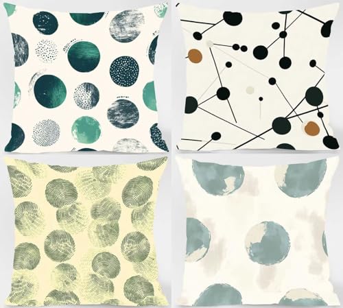 Kissenbezug 80×80 cm 4er Set, Outdoor Kissen Runden Sofakissen Cremefarben Dekokissen, Doppelseitiger Druck Wasserdichtes Leinen KissenbezüGe, KissenhüLlen für Schlafzimmer Deko Wohnzimmer Model-11110