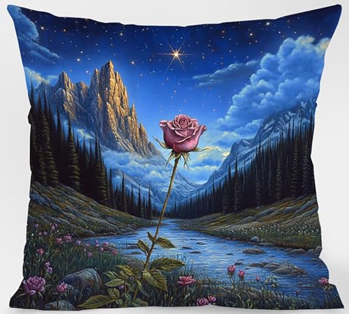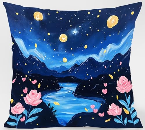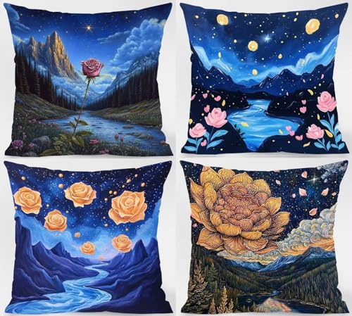 Kissenbezug 80×80 cm 4er Set, Outdoor Kissen Sternenhimmel Sofakissen Blume Dekokissen, Doppelseitiger Druck Wasserdichtes SanftKissenbezüGe, KissenhüLlen für Schlafzimmer Deko Wohnzimmer Model-11662