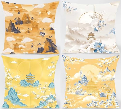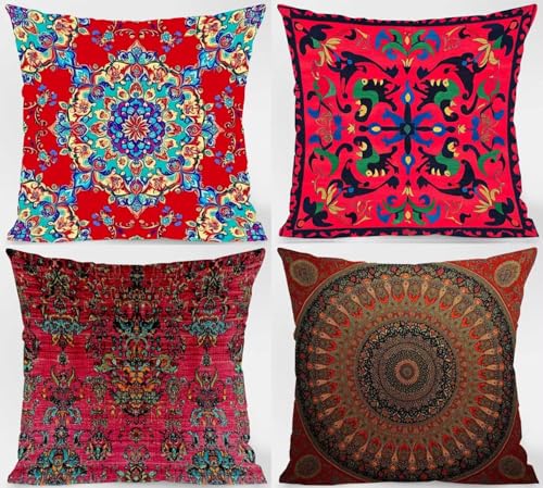 【DOPPELSEITIGES MUSTER】: 4 quadratische Kissenbezüge. Bitte berücksichtigen Sie, dass jedoch ein Kissenbezug, keine Füllung oder Einlage enthalten ist. Das beidseitig bedruckte Muster ermöglicht es Ihnen, den Raum nach Belieben zu dekorieren und die gemusterte Seite nicht zu stöbern. Das ist praktischer