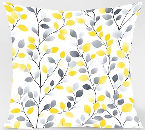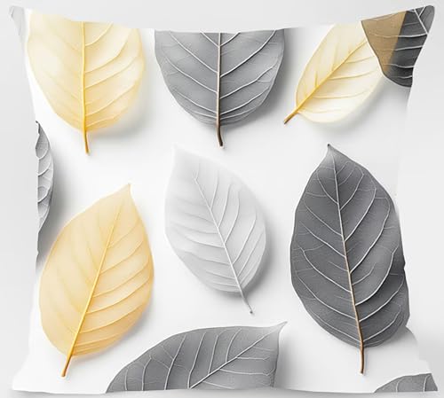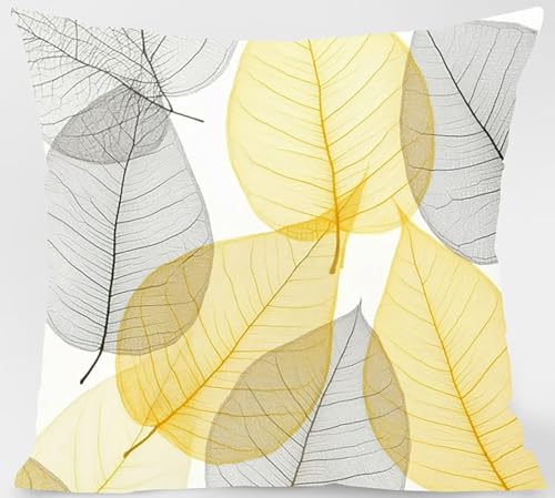 Kissenbezug 80x80cm 4er Set, Outdoor Kissen Blatt Sofakissen Pflanzen Dekokissen, Doppelseitiger Druck Wasserdichtes Leinen KissenbezüGe, KissenhüLlen für Auto Schlafzimmer Deko Wohnzimmer Model-11909