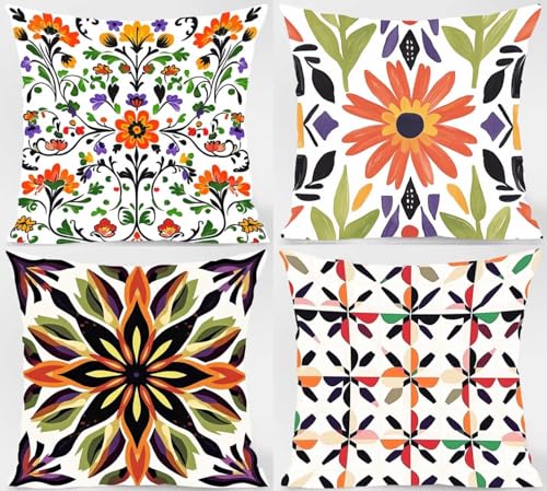 【DOPPELSEITIGES MUSTER】: 4 quadratische Kissenbezüge. Bitte würdigen Sie, dass dagegen ein Kissenbezug, keine Füllung oder Einlage enthalten ist. Das beidseitig bedruckte Muster ermöglicht es Ihnen, den Raum nach Belieben zu dekorieren und die gemusterte Seite nicht zu weiden. Das ist praktischer