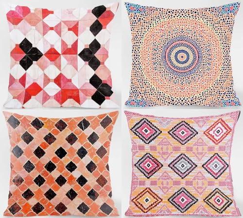 【DOPPELSEITIGES MUSTER】: 4 quadratische Kissenbezüge. Bitte würdigen Sie, dass zugegeben ein Kissenbezug, keine Füllung oder Einlage enthalten ist. Das beidseitig bedruckte Muster ermöglicht es Ihnen, den Raum nach Belieben zu dekorieren und die gemusterte Seite nicht zu abweiden. Das ist praktischer
