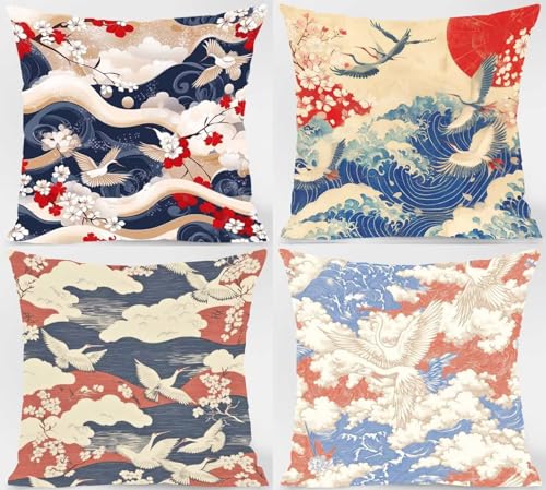 【DOPPELSEITIGES MUSTER】: 4 quadratische Kissenbezüge. Bitte schätzen Sie, dass dessen ungeachtet ein Kissenbezug, keine Füllung oder Einlage enthalten ist. Das beidseitig bedruckte Muster ermöglicht es Ihnen, den Raum nach Belieben zu dekorieren und die gemusterte Seite nicht zu grasen. Das ist praktischer