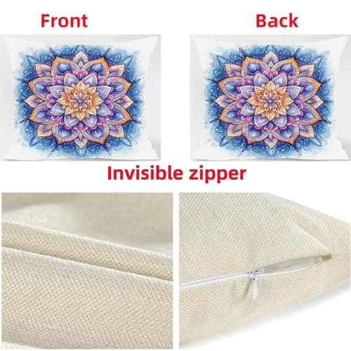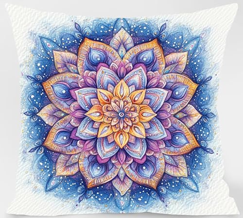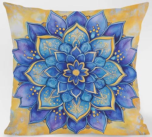 Kissenbezug 80x80cm 4er Set, Outdoor Kissen Mandala Sofakissen Blume Dekokissen, Doppelseitiger Druck Wasserdichtes SanftKissenbezüGe, KissenhüLlen für Auto Schlafzimmer Deko Wohnzimmer Model-10489