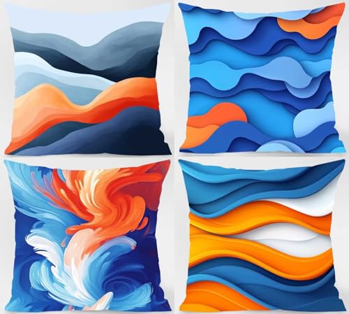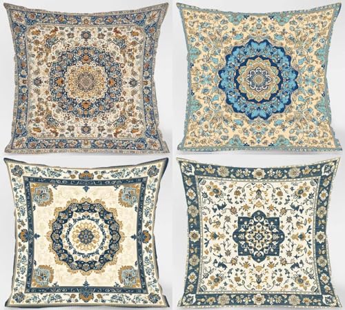 【DOPPELSEITIGES MUSTER】: 4 quadratische Kissenbezüge. Bitte denken Sie, dass doch ein Kissenbezug, keine Füllung oder Einlage enthalten ist. Das beidseitig bedruckte Muster ermöglicht es Ihnen, den Raum nach Belieben zu dekorieren und die gemusterte Seite nicht zu abgrasen. Das ist praktischer