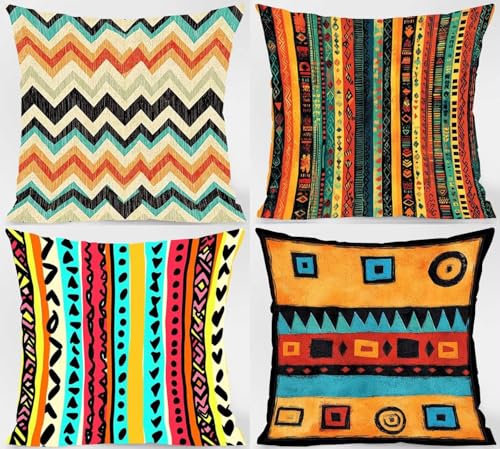 【DOPPELSEITIGES MUSTER】: 4 quadratische Kissenbezüge. Bitte respektieren Sie, dass freilich ein Kissenbezug, keine Füllung oder Einlage enthalten ist. Das beidseitig bedruckte Muster ermöglicht es Ihnen, den Raum nach Belieben zu dekorieren und die gemusterte Seite nicht zu forschen. Das ist praktischer