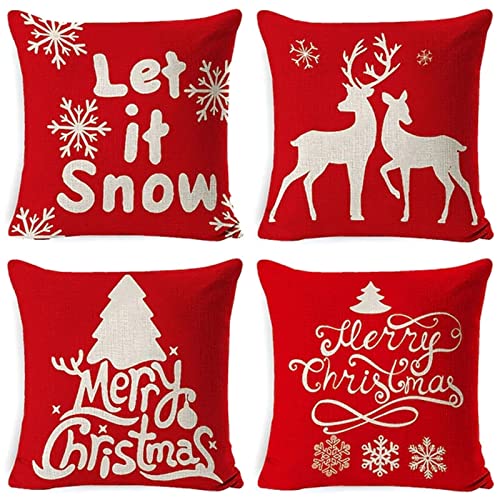 Weihnachtskissenbezug 4er-Set Dekorativer quadratischer Sofakissenbezug