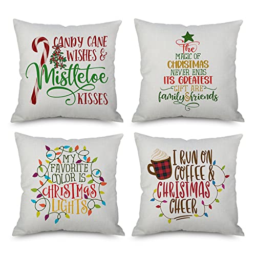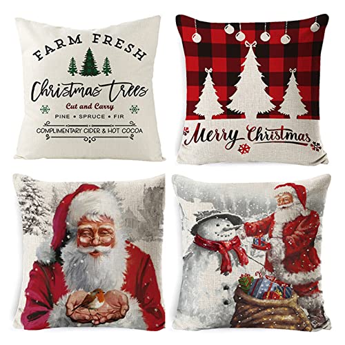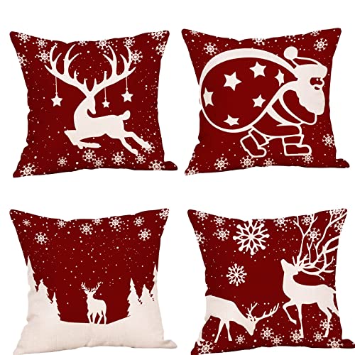 Weihnachtskissenbezug 4er-Set Dekorativer quadratischer Sofakissenbezug