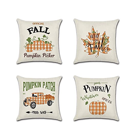 Kissenbezug 80x80cm,4er Set Deko Kissen,Autobaum Blume Doppelseitiger Druck Kissenbezüge,Quadrat Leinen kopfkissenbezug…