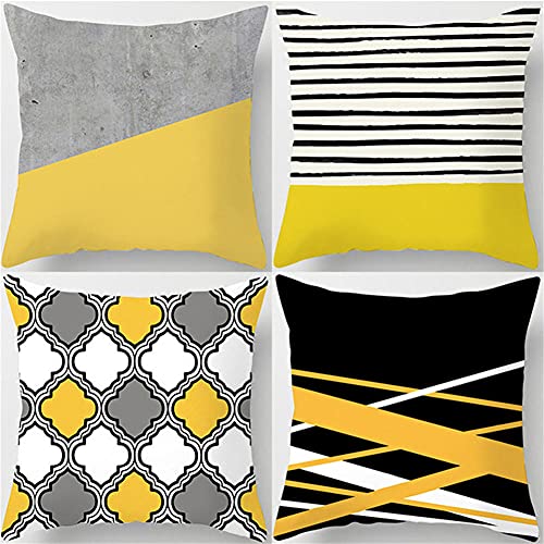 Kissenbezug 80x80cm,4er Set Deko Kissen,Gelb Grau Geometrisch Doppelseitiger Druck Kissenbezüge,Quadrat Leinen…