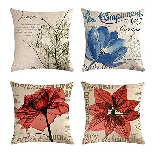 Kissenbezug 80x80cm,4er Set Deko Kissen,Lila orange Blume Doppelseitiger Druck Kissenbezüge,Quadrat Leinen…