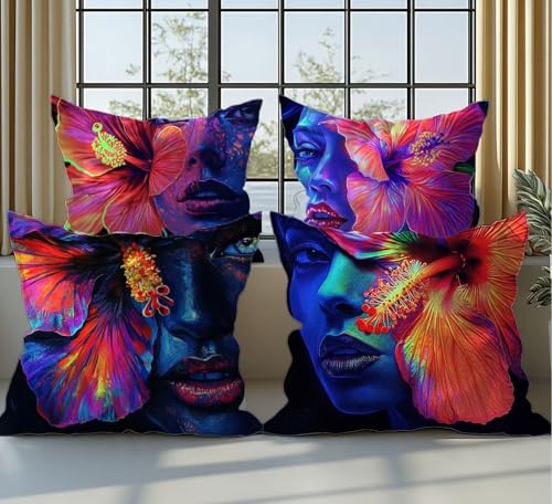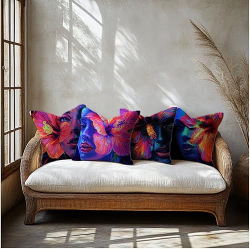 Kissenbezug Blume Kissenbezüge Frau Kissenhüllen 55x55cm 4er Set Frühlings Dekokissen mit Unsichtbarem Reißverschluss Design, Doppelseitig Sofakissen Deko Schlafzimmer, Geschenke für Frauen,Model354