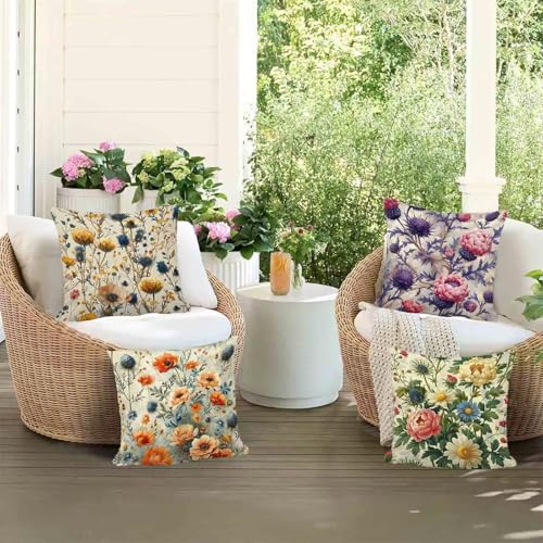 Kissenbezug Blume Outdoor Kissen 4er Set, Wasserdichter Sofakissen Gelb Kissenbezüge Leinen Dekokissen mit Unsichtbarem Reißverschluss Zierkissen für Wohnzimmer Garten Dekorative 80 x 80 cm-lsy25044A