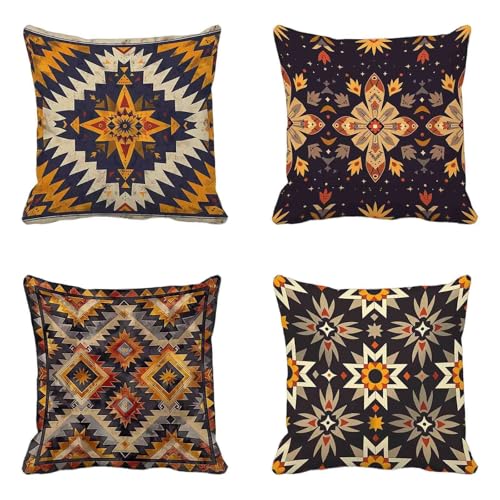 【LIEFERUMFANG】Kissenbezug 4er set mit grafischen motiven. sofakissen sind in verschiedenen farbkombinationen erhältlich und passen zu verschiedenen bettwäschen. Hinweis: Kissenkern nicht im lieferumfang enthalten