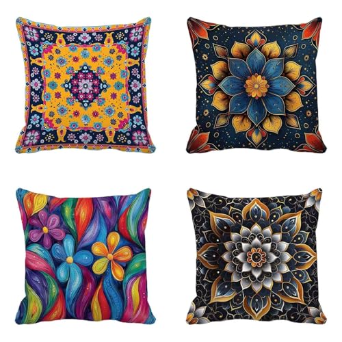 【LIEFERUMFANG】Kissenbezug 4er set mit grafischen motiven. sofakissen sind in verschiedenen farbkombinationen erhältlich und passen zu verschiedenen bettwäschen. Hinweis: Kissenkern nicht im lieferumfang enthalten