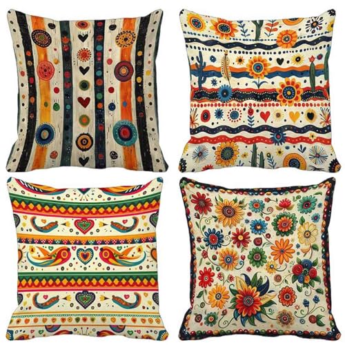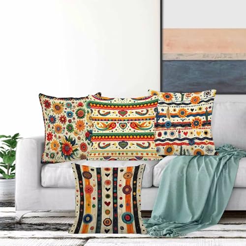 【LIEFERUMFANG】Kissenbezug 4er set mit grafischen motiven. sofakissen sind in verschiedenen farbkombinationen erhältlich und passen zu verschiedenen bettwäschen. Hinweis: Kissenkern nicht im lieferumfang enthalten