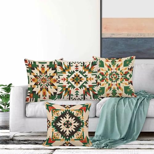 【LIEFERUMFANG】Kissenbezug 4er set mit grafischen motiven. sofakissen sind in verschiedenen farbkombinationen erhältlich und passen zu verschiedenen bettwäschen. Hinweis: Kissenkern nicht im lieferumfang enthalten
