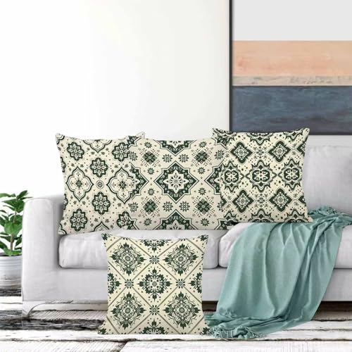 【LIEFERUMFANG】Kissenbezug 4er set mit grafischen motiven. sofakissen sind in verschiedenen farbkombinationen erhältlich und passen zu verschiedenen bettwäschen. Hinweis: Kissenkern nicht im lieferumfang enthalten