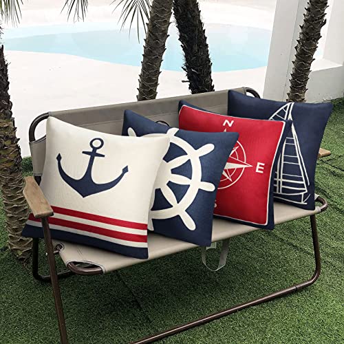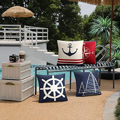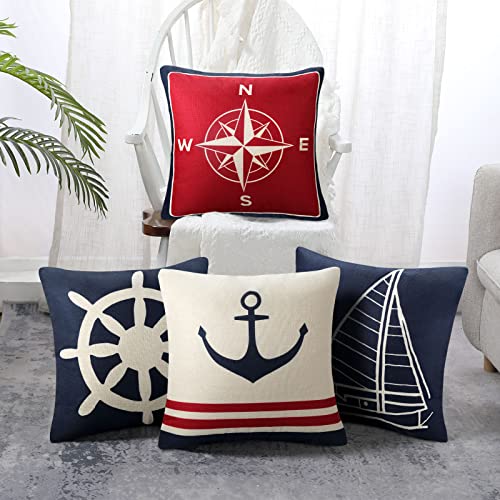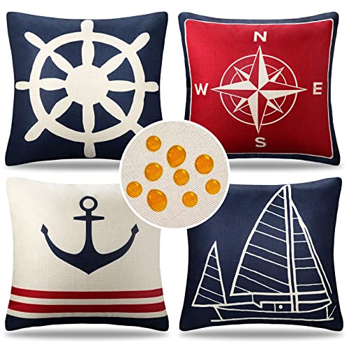 Kissenbezug Deko Sommer Segelboot Anker Kompass Ruder Kissenhülle Blaue Rot Dekokissen Sofakissen Bezug Auto Wohnzimmer Couchkissen Kissenbezüge Bed Büro Cafe Gartenmöbel Outdoor 45 x 45 cm 4er Set
