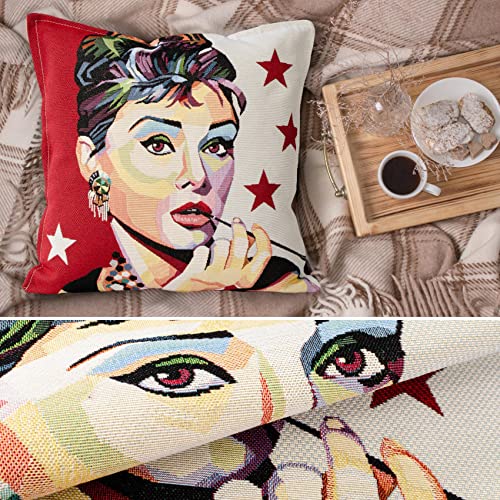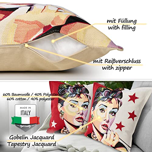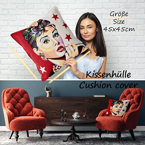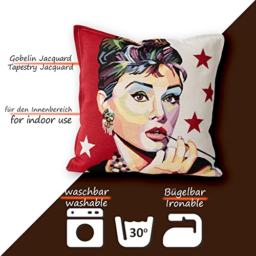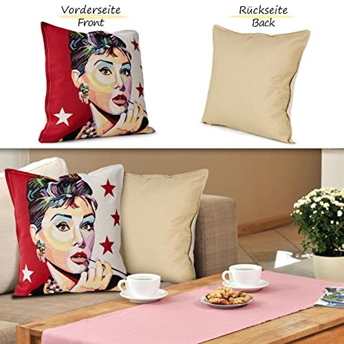 Kissenbezug Dekokissen Kissen Sofakissen Kissenbezüge Kissenhülle Gobelin Motiv Audrey Hepburn 45x45cm mit Füllung
