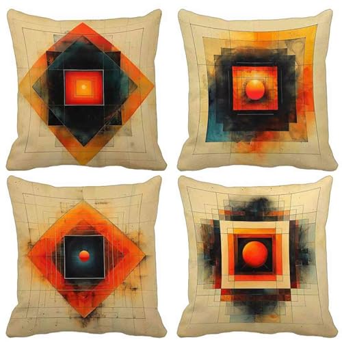 【LIEFERUMFANG】Kissenbezug 4er set mit grafischen motiven. sofakissen sind in verschiedenen farbkombinationen erhältlich und passen zu verschiedenen bettwäschen. Hinweis: Kissenkern nicht im lieferumfang enthalten