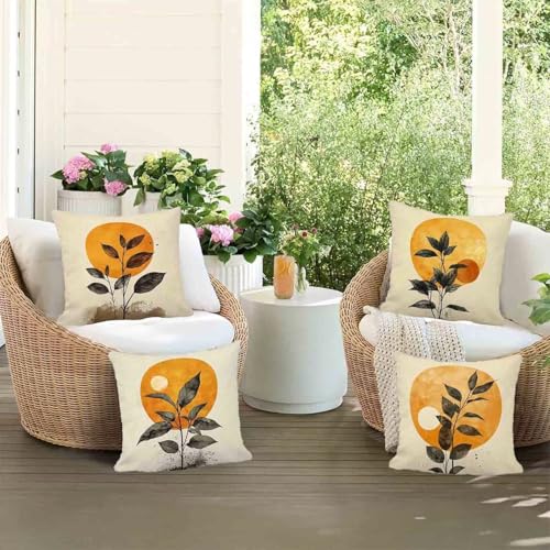 Kissenbezug Einfachheit Outdoor Kissen 4er Set, Wasserdichter Sofakissen Gelb Kissenbezüge Leinen Dekokissen mit Unsichtbarem Reißverschluss Zierkissen für Wohnzimmer Garten Dekorative 80×80-lsy2504KO