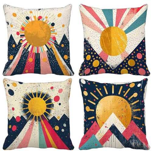 【LIEFERUMFANG】Kissenbezug 4er set mit grafischen motiven. sofakissen sind in verschiedenen farbkombinationen erhältlich und passen zu verschiedenen bettwäschen. Hinweis: Kissenkern nicht im lieferumfang enthalten