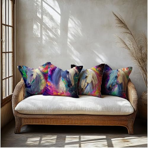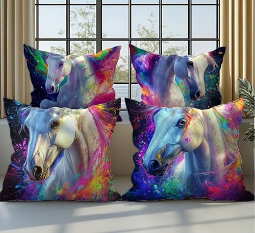 Kissenbezug Farbe Kissenbezüge Pferd Kissenhüllen 50x50cm 4er Set Frühlings Dekokissen mit Unsichtbarem Reißverschluss Design, Doppelseitig Sofakissen Deko Schlafzimmer, Geschenke für Frauen,Model362