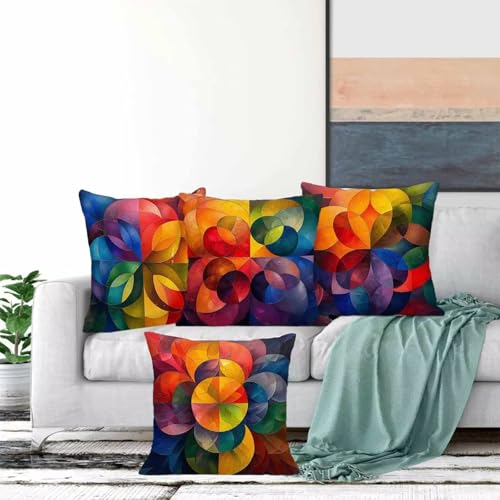 【LIEFERUMFANG】Kissenbezug 4er set mit grafischen motiven. sofakissen sind in verschiedenen farbkombinationen erhältlich und passen zu verschiedenen bettwäschen. Hinweis: Kissenkern nicht im lieferumfang enthalten