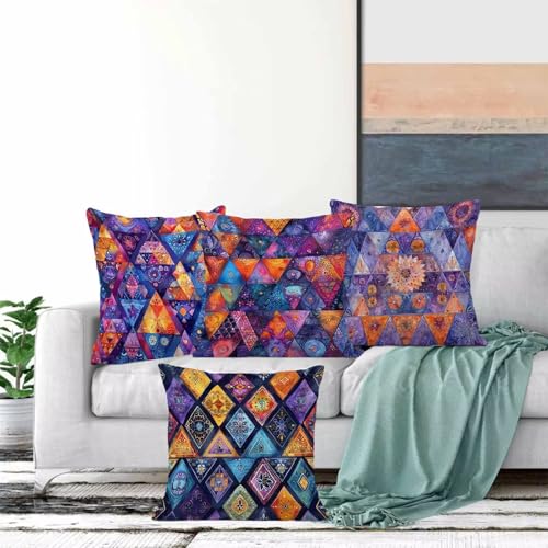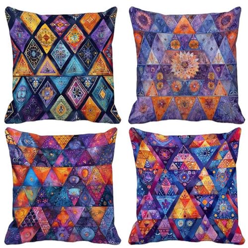【LIEFERUMFANG】Kissenbezug 4er set mit grafischen motiven. sofakissen sind in verschiedenen farbkombinationen erhältlich und passen zu verschiedenen bettwäschen. Hinweis: Kissenkern nicht im lieferumfang enthalten