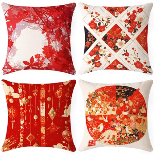 【LIEFERUMFANG】Kissenbezug 4er set mit grafischen motiven. sofakissen sind in verschiedenen farbkombinationen erhältlich und passen zu verschiedenen bettwäschen. Hinweis: Kissenkern nicht im lieferumfang enthalten