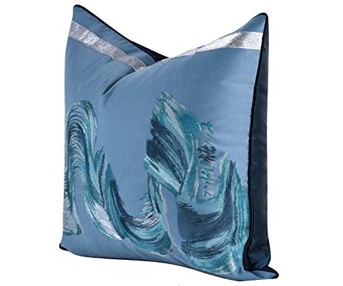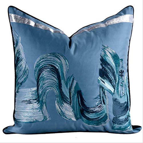 Kissenbezug Kissenbezüge Luxus Abstrakte Gestreifte Satin Quadratische Sofakissen Dekokissen für Die Dekoration Schlafzimmer Wohnzimmer Sofa Büro Blau 55 X 55 cm (Ohne Kern)