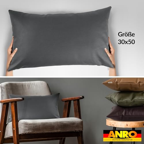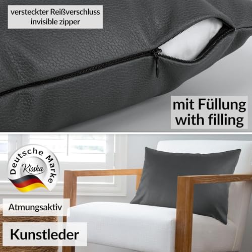Kissenbezug Kunstleder Dekokissen Sofakissen Leder-Kissenbezüge Kissenhülle Kissen KUMO Grau 30x50cm mit Füllung