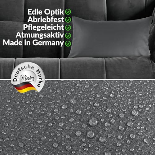 HOCHWERTIGES MATERIAL: Unsere handgefertigten Kunstleder Kissenbezüge bestehen 100% ganz atmungsaktivem Polyester, das nicht jedoch abgedreht weich und luxuriös im Griff ist, sondern vulgo enorm robust und widerstandsfähig.