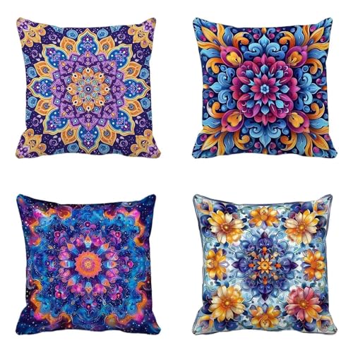 【LIEFERUMFANG】Kissenbezug 4er set mit grafischen motiven. sofakissen sind in verschiedenen farbkombinationen erhältlich und passen zu verschiedenen bettwäschen. Hinweis: Kissenkern nicht im lieferumfang enthalten
