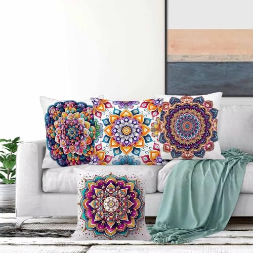【LIEFERUMFANG】Kissenbezug 4er set mit grafischen motiven. sofakissen sind in verschiedenen farbkombinationen erhältlich und passen zu verschiedenen bettwäschen. Hinweis: Kissenkern nicht im lieferumfang enthalten