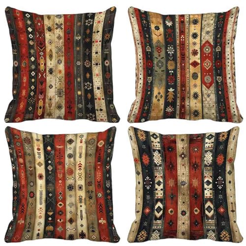 【LIEFERUMFANG】Kissenbezug 4er set mit grafischen motiven. sofakissen sind in verschiedenen farbkombinationen erhältlich und passen zu verschiedenen bettwäschen. Hinweis: Kissenkern nicht im lieferumfang enthalten