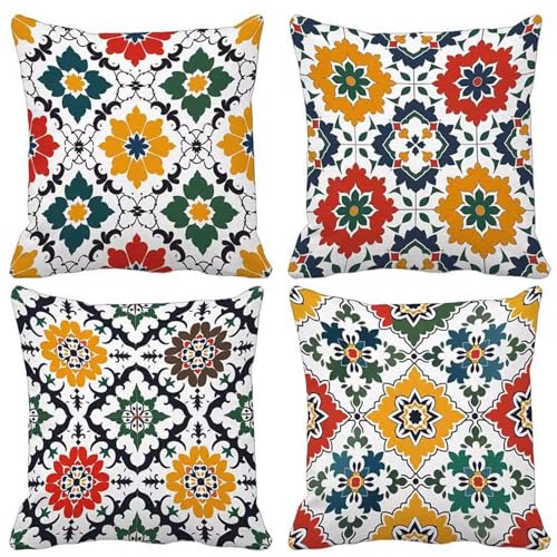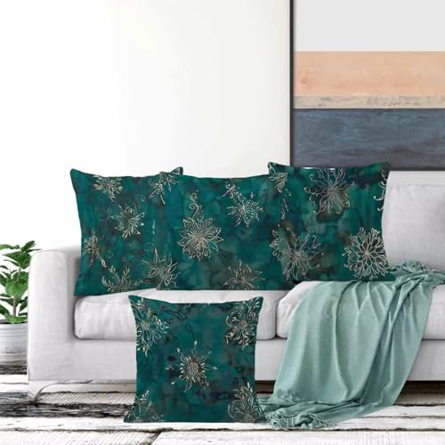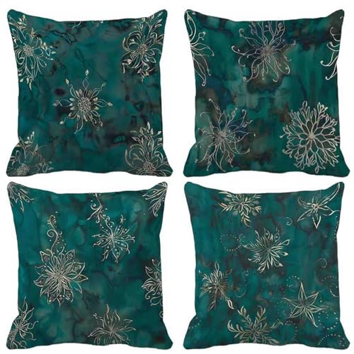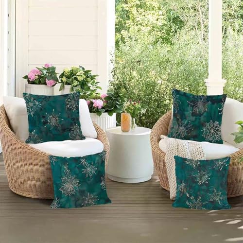 Kissenbezug Muster Outdoor Kissen 4er Set, Wasserdichter Sofakissen Türkis Kissenbezüge Leinen Dekokissen mit Unsichtbarem Reißverschluss Zierkissen für Wohnzimmer Garten Dekorative 80×80-lsy250475