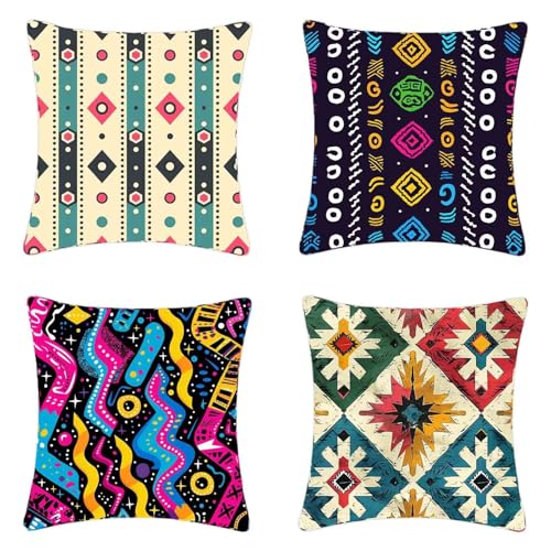 【LIEFERUMFANG】Kissenbezug 4er set mit grafischen motiven. sofakissen sind in verschiedenen farbkombinationen erhältlich und passen zu verschiedenen bettwäschen. Hinweis: Kissenkern nicht im lieferumfang enthalten