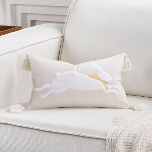 Attraktive Designs: Unsere Kissenbezüge Mit Hasenmotiv Sind An Vier Ecken Mit Einem Eleganten Osterhasen Quasten Bestickt Vermitteln Einen Festlichen Gruß. Die Aufwendige Stickerei Verleiht Ihrer Feiertagsdekoration Mit Sicherheit Raffinesse.