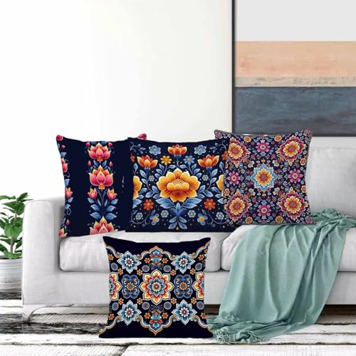 【LIEFERUMFANG】Kissenbezug 4er set mit grafischen motiven. sofakissen sind in verschiedenen farbkombinationen erhältlich und passen zu verschiedenen bettwäschen. Hinweis: Kissenkern nicht im lieferumfang enthalten