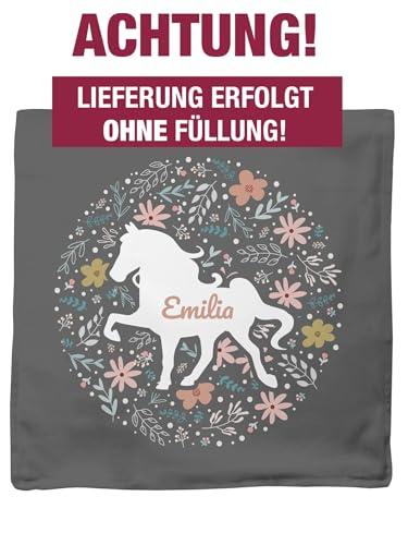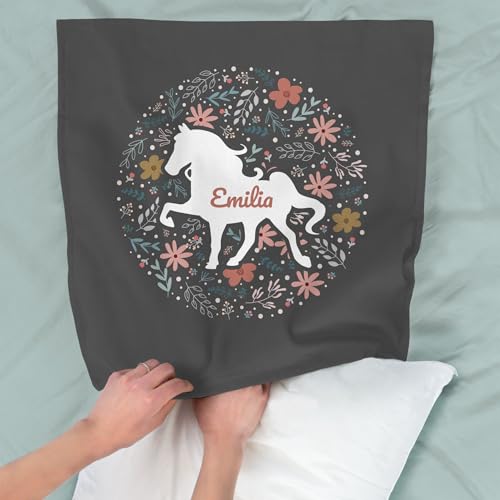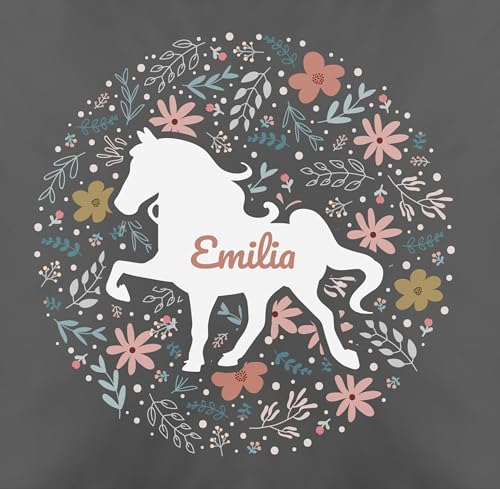 ✔️ PFERDEMOTIV: Niedliches Motiv mit Pferd, Blumen und Wunschname für Kinder